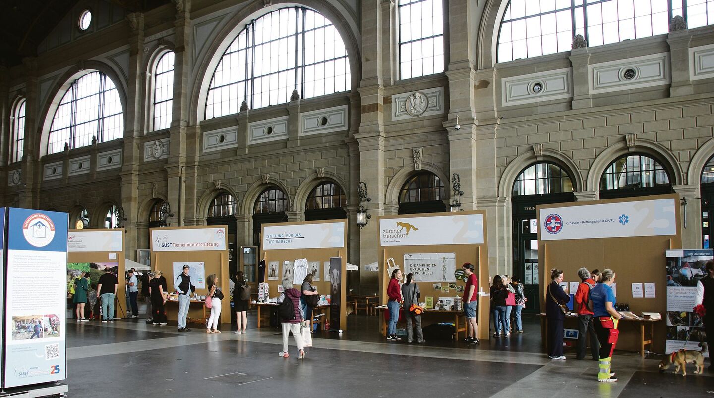 Tierschutzorganisationen in der Zürcher Bahnhofshalle