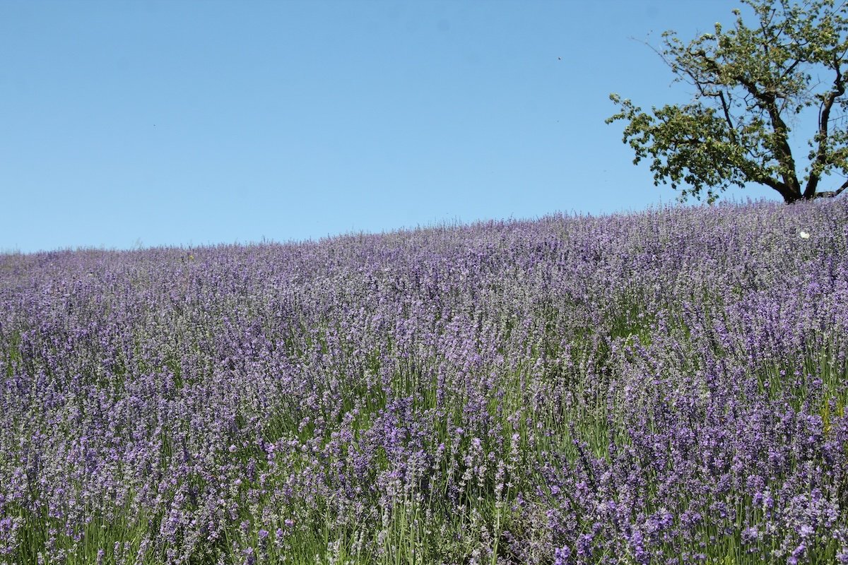 Ferienstimmung ja, Provence nein. Was aussieht wie in Südfrankreich, liegt im Oberaargau. Auf einem zwölf Aren grossen Stück Land der Bauernfamilie Wegmüller gedeiht Berg-Lavendel. Das Feld verzaubert, weckt Träume, die Gedanken fliegen. Poesie pur. Und das nach 15 Minuten Zugfahrt von Langenthal (BE) ins Dorf Kleindietwil (BE) und einem zwanzigminütigen Spaziergang ins Eichholz. Dort liegt der zur Gemeinde Madiswil gehörende Hof von Helen und Markus Wegmüller und ihren Kindern Sarina, Sven und Jasmin. Ein Bauernhaus am Hang, dahinter eine Scheune, im Garten blühen Hortensien und Rosen, Gemüse wächst.
