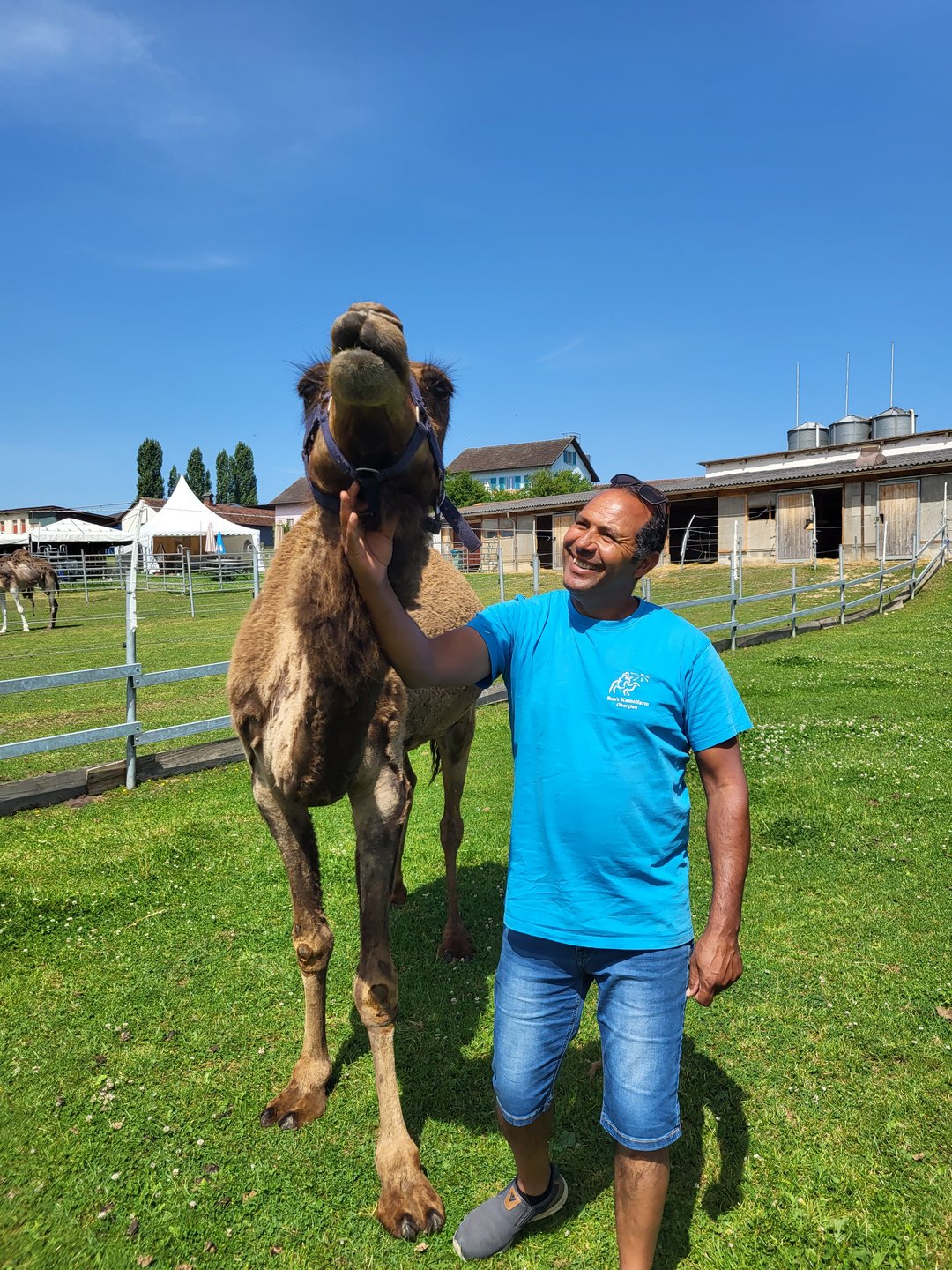 Es ist ein idyllisches Fleckchen Erde am Dorfrand von Oberglatt (ZH). Wenn nur nicht alle paar Minuten ein Flugzeug lautstark seinen Start ankündigen würde. Wenige hundert Meter von den letzten Bauernhöfen entfernt, beginnt bereits die viel befahrene Piste des Flughafens Zürich. Die Dromedare von Ben’s Kamelfarm scheint es wenig zu kümmern; unbeirrt fahren sie fort mit ihrer stoischen Bearbeitung der Rasenfläche. «Es sind keine Fluchttiere», erklärt Ben Salem. Der gebürtige Südtunesier kennt seine Dromedare in- und auswendig. Hineingeboren in eine Züchterfamilie, hat auch Ben Salem die Faszination für diese typischen Wüstentiere geerbt. Als er vor 25 Jahren Tunesien verliess und seiner Liebe in die Schweiz folgte, begann er den täglichen Umgang mit den Dromedaren schmerzlich zu vermissen.