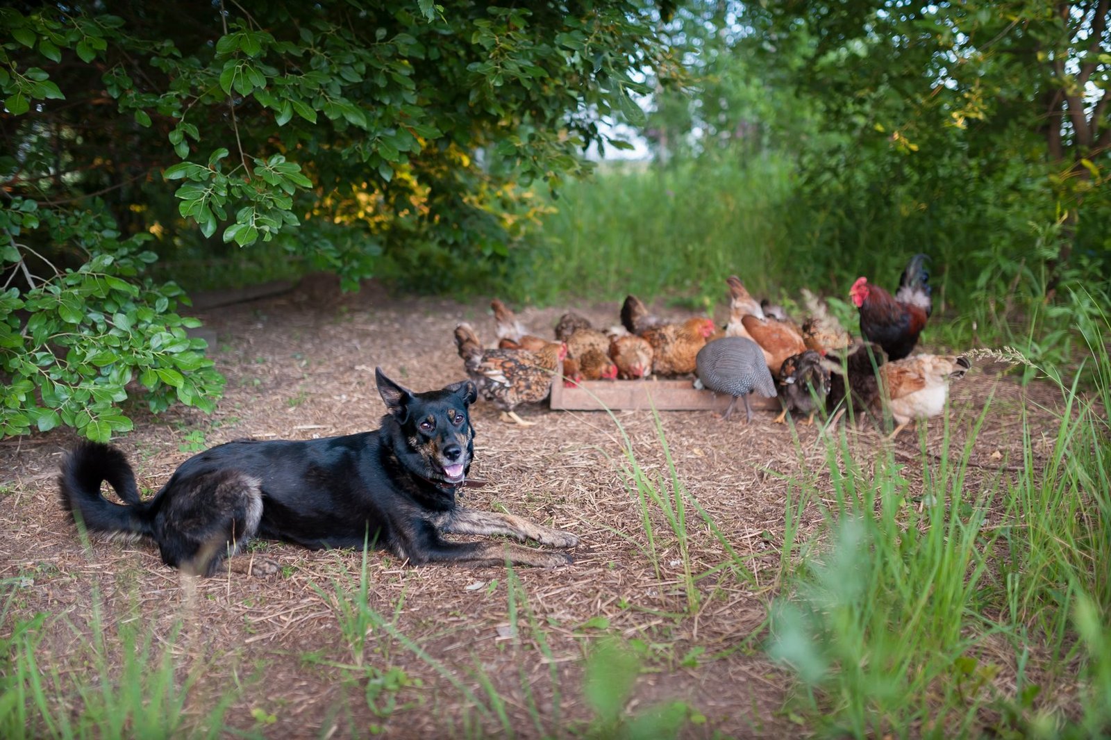 Der SchutzdienstEin wachsamer Hund hält Wildtiere fern, die im Gemüsegarten oder bei Jungtieren Schaden anrichten können. So schafft seine Präsenz ein Gefühl von Sicherheit für Menschen, Tiere und Pflanzen.