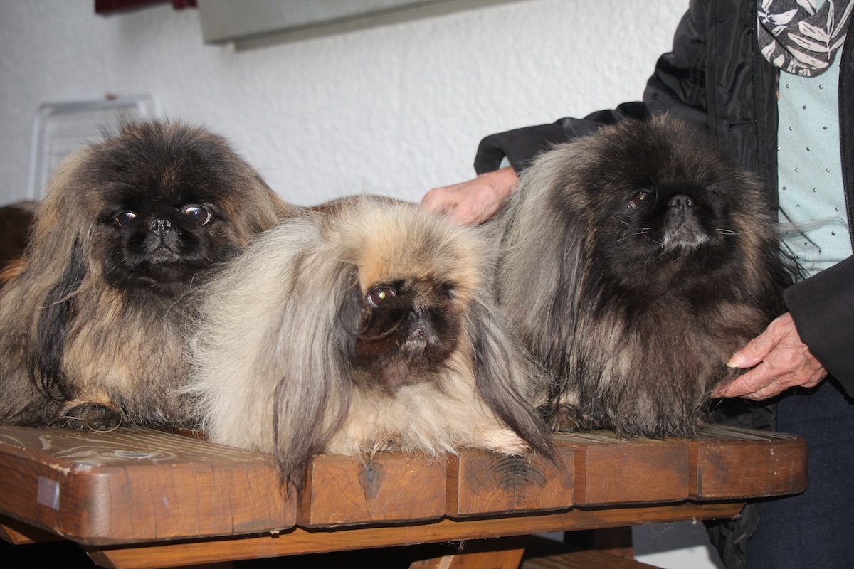 Die kleinen Hunde mit langem Fell haben auch in der Schweiz ihre Liebhaberinnen und Liebhaber. Eine davon ist Ines Riesen. Ihre Zuneigung zu den Palasthunden begann in der Kindheit. Sie erinnert sich:«Meine Mutter züchtete bereits in den 1940er-Jahren Pekinesen. Ich wollte dann als Kind einen Dackel.» Die Mutter habe klargestellt: «Entweder einen Pekinesen oder keinen Hund!» Seither halte sie mit einem kleinen Unterbruch immer Pekinesen. Es ist nicht so, dass Ines Riesen andere Hunde nicht kennt. Ein Schäfer, eine Deutsche Dogge und ein Yorkshire Terrier lebten ebenfalls in ihrem Haushalt. Sie stellt aber klar: «Wer einmal einen Pekinesen hielt, will immer wieder einen haben.»