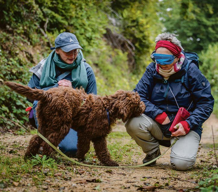 Die Nachfrage nach Blinden- und Vertrauenshunden ist hoch: Derzeit betragen die Wartezeiten rund zwei Jahre. «Wir haben deutlich mehr Klienten als Hunde, weshalb wir laufend neue Junghundetrainer suchen», sagt Nathalie Borer und streichelt Ricco, einem neugierigen, 19-monatigen Barbet über den Kopf. Sie hat ihn vor wenigen Wochen von einer Trainerin übernommen und prüft nun, ob er mit seinem charakterstarken Naturell als Blindenhund wirklich in Frage kommt. Einen Schritt weiter ist Taya, die bereits führen kann. Der Grosspudel, den Masha Streiff derzeit auf seinen zukünftigen Job vorbereitet, ist nicht nur sehr lernwillig und mit grosser Freude am Werk, sondern auch ausgesprochen schnell: «Mit ihr trainiere ich derzeit vor allem Geduld und ein etwas gemächlicheres Tempo», sagt die Hundetrainerin lachend. Doch jetzt ist für die vife Hündin und ihren draufgängerischen Compagnon erst einmal eine Runde Freizeit angesagt. Das Führgeschirr liegt am Boden, der Tag ist jung, der Spieldrang kitzelt in den Pfoten.