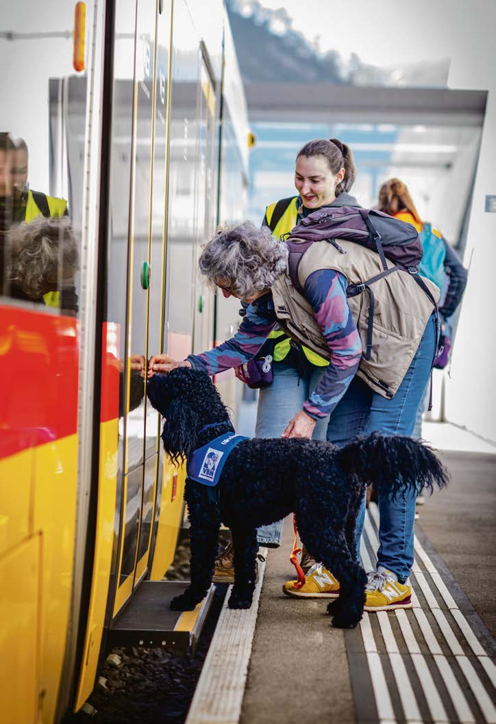 So unterschiedlich die Motive für einen Einsatz als Junghundetrainer sind, so individuell sind auch die Lernerfahrungen und die Vorlieben der Hunde, wenn sie ihre Patenfamilie verlassen. «Einige sind versiert im Zug-, andere eher im Autofahren, da sind solche mit grosser Erfahrung mit Kindern und jene, die das Alleinsein besser mögen», resümiert Streiff. Für die angehenden Blindenhunde ist auch der erste Geburtstag ein wichtiger Stichtag. Dann wird der Jungspund zwar vor allem gefeiert, aber auch gesundheitlich gründlich gecheckt. «Die Resultate entscheiden darüber, ob ein Hund weiterhin für Führtätigkeiten in Frage kommt. Auch ein ausgeprägter Jagdinstinkt oder grosse Schreckhaftigkeit können Gründe sein, wieso die Ausbildung zu diesem Zeitpunkt sistiert wird», erklärt Nathalie Borer. Dieser Entscheid kann aber auch erst später fallen, wenn der Instruktor den Hund übernimmt. Tieren, die als Blindenhunde ausscheiden, steht noch eine weitere Tür offen. Masha Streiff: «Ist ein Hund eher auf den Halter fokussiert oder zögerlich unterwegs, ist das für Menschen mit einer Sehbehinderung eine grosse Herausforderung, als Vertrauenshund für Menschen mit Autismus jedoch kann er seinen Auftrag durchaus ausüben.»