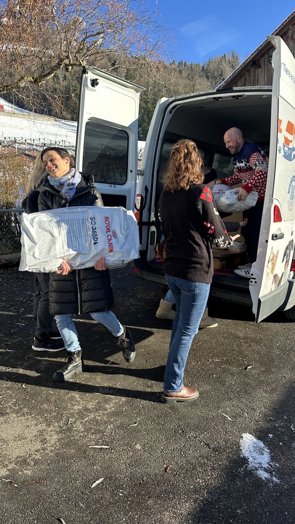 Weihnachtstruck der Susy Utzinger Stiftung: Nina Burri überbringt dem Tierheim Burg (SZ) Futter