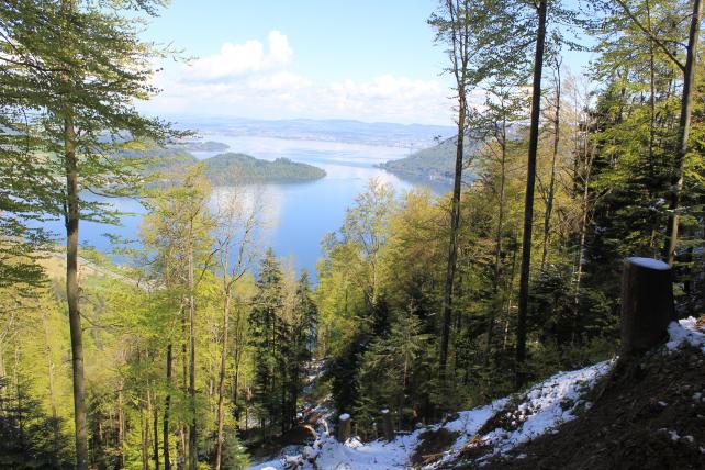 Von hier aus ist der Blick frei auf den Zugersee. Auf die Autobahn, die Hochspannungsleitung und die Zugstrecke in Richtung Goldau. Eine wichtige Nord-Süd-Achse, umso mehr, als hier eine der beiden Eisenbahnlinien in Richtung des neuen Gotthard-Basistunnels entlangführt. Vorstellbar das Chaos, das auf Schiene und Strasse entstehen würde, ginge hier eine Lawine oder ein Erdrutsch ab. Um das zu verhindern, steht hier der Schutzwald, in dem die Freiwilligen nun arbeiten. Er – oder zumindest dieser Abschnitt – gehört den SBB, ebenso die Hütte, in der die Projektteilnehmer nächtigen. Schweizer, Deutsche, ja gar ein Pole, sind unterwegs, im Auftrag der Bundesbahnen. Verdienen tun sie dabei im Gegensatz zu Projektleiter Schmid nichts. «Dafür brauchen sie die ganze Woche über keinen Rappen», sagt er und schiebt sich das letzte Stück Brot in den Mund.