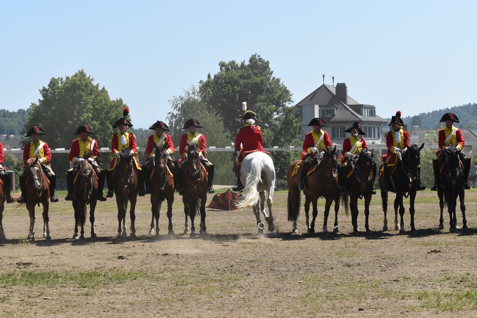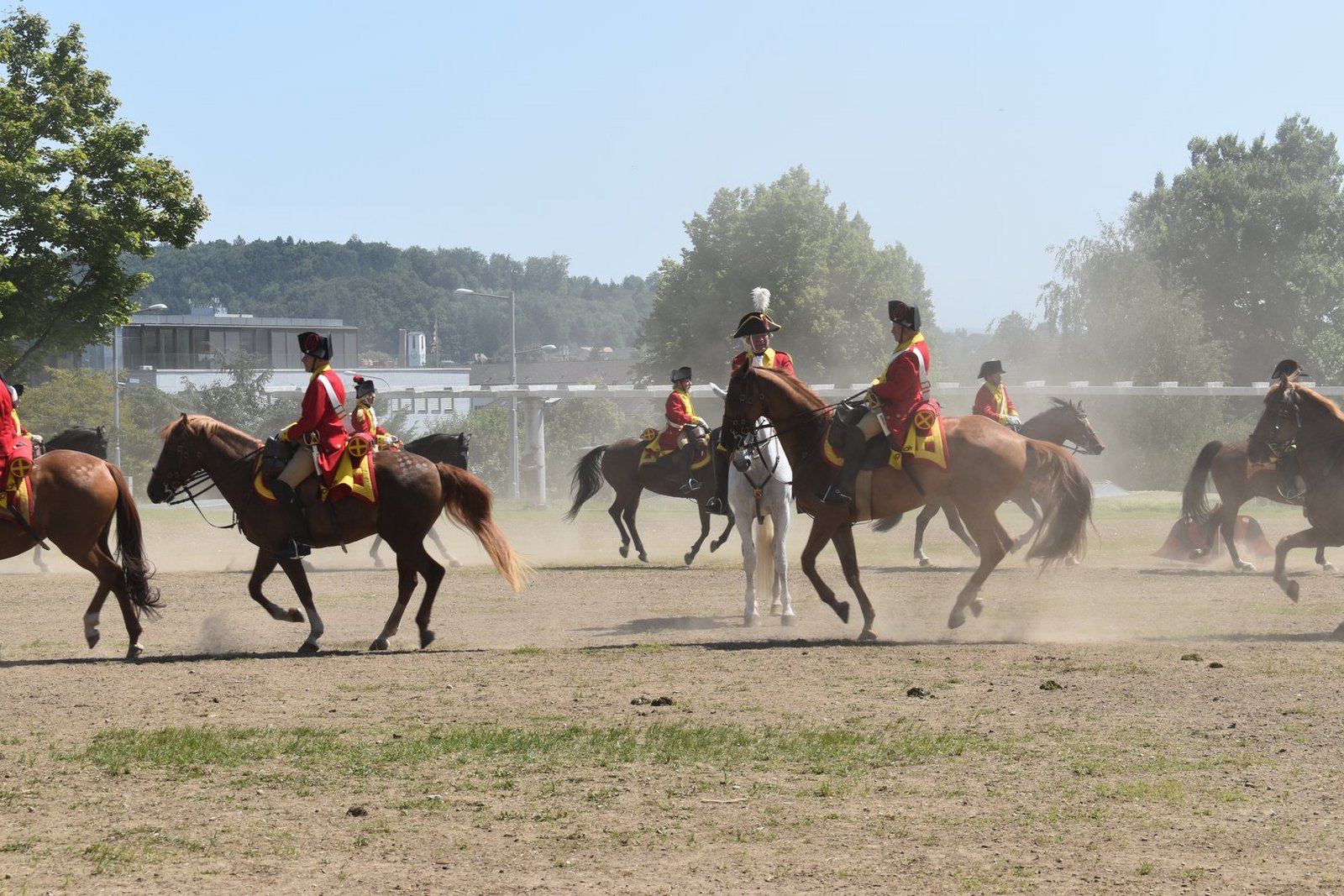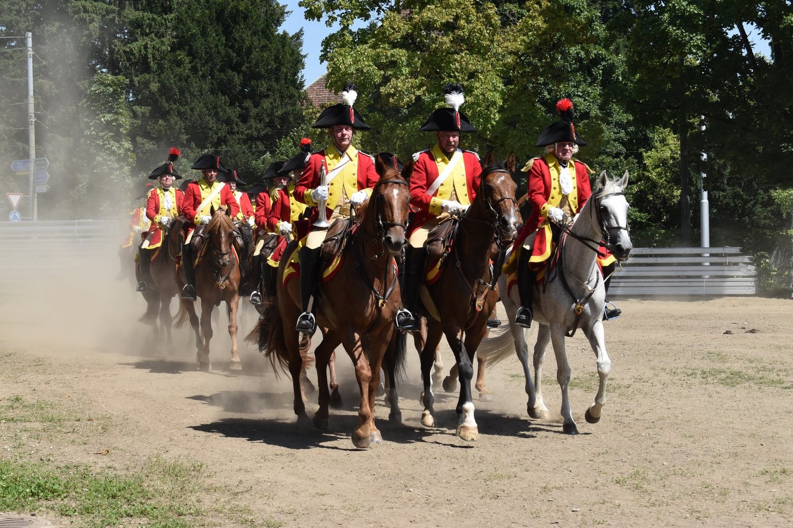 Aaachtung!», «Compagnie Galopp!», «Marsch!» – Befehle wie diese, begleitet von den Klängen eines Clairons, Trommelwirbeln und Piccolos, schallen am 9. August über die Chantierwiese in Solothurn. Wer sich zufällig dort befindet und nicht im Bilde ist, dass gerade die Solothurner Barocktage stattfinden, dürfte sich ob der Szene, die sich auf der Wiese abspielt, im falschen Film wähnen. Denn dort befinden sich 22 grösstenteils ältere Reiter, hoch zu Ross, in voller Aktion.