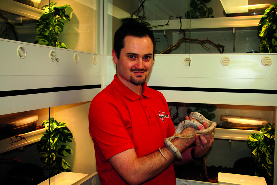 Michel Knuchel aus dem solothurnischen Herbetswil hat sich auf die Zucht besonderer Kornnatter-Morphen spezialisiert. In seinem Haus wimmelt es von farbigen Schlangen, die er mit ruhiger Hand und viel Know-how pflegt – eine Passion, die aus einem Kindheitstraum entstanden ist.
