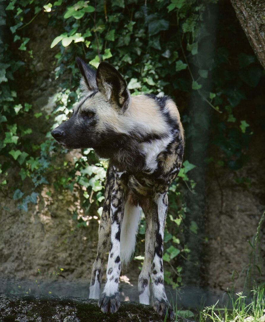 Afrikanische Wildhunde oder Hyänenhunde durchstreifen in Rudeln die afrikanische Savanne. Sie sind aufgrund von Krankheiten und Lebensraumverlust selten geworden. Im Zoo Basel werden sie seit 1954 gehalten.