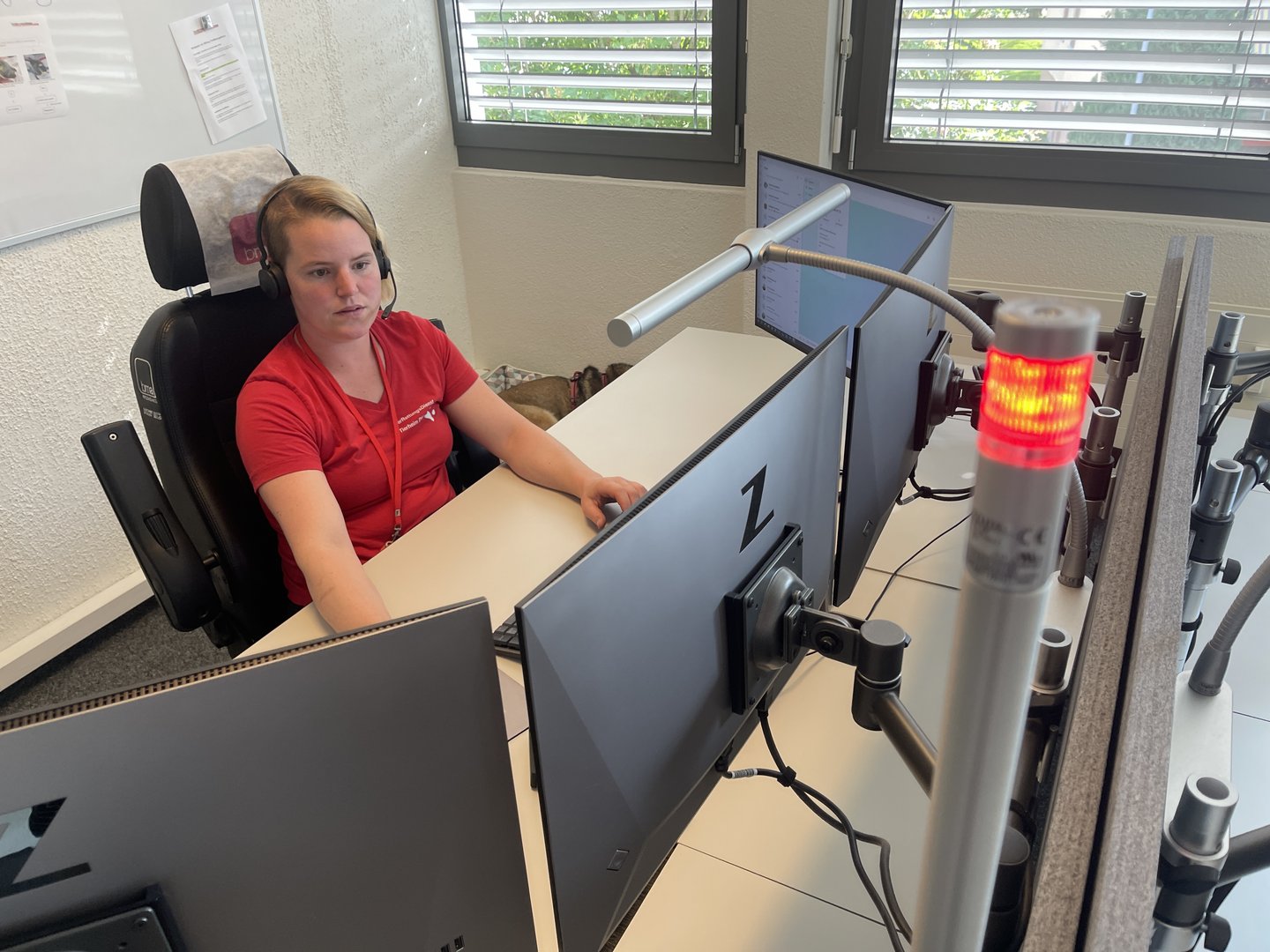 Die rote Lampe über dem Schreibtisch mit den vier Monitoren blinkt. «Tiernotruf, wo genau ist der Notfallort?», meldet sich Melanie De Witte. Am anderen Ende des Telefons meldet sich eine aufgeregte Frau. Sie habe auf dem Weg zur Arbeit eine verletzte Katze entdeckt, die apathisch neben dem Weg liege. De Witte beruhigt die Frau und versichert, dass sich sofort jemand auf den Weg mache. Gleichzeitig entlockt sie der Anruferin wichtige Informationen, die sie über das Einsatzleitsystem auf dem Computer eintippt. Auf einer Karte sieht sie, welches Einsatzfahrzeug sich am nächsten beim Notfallort befindet und ob der Fahrer oder die Fahrerin verfügbar ist. Mit einem Mausklick schickt sie diesem alle nötigen Informationen aufs Handy.