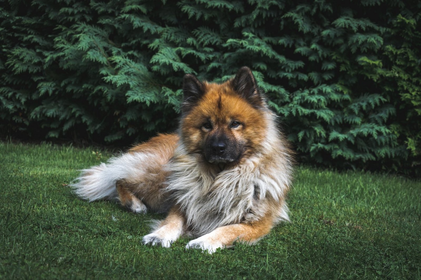 Das dichte, mittellange Fell mit üppiger Halskrause verleiht dem Eurasier sein charakteristisches, beinahe löwenhaftes Erscheinungsbild. Farblich ist fast alles erlaubt – von wolfsgrau über rot bis schwarz.