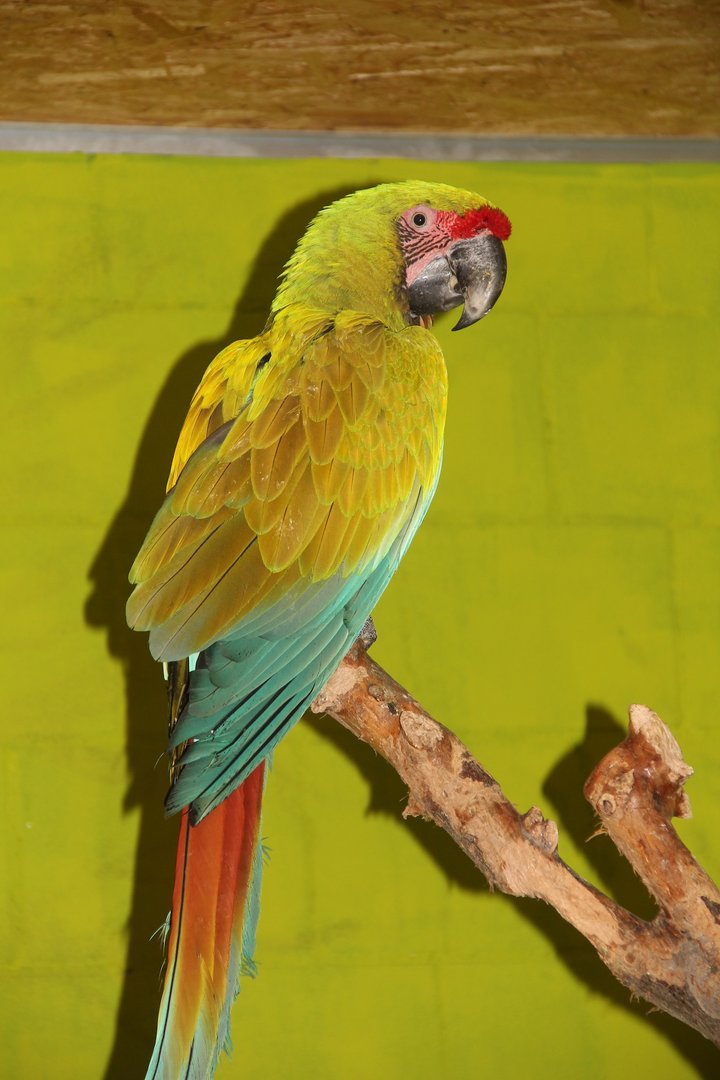 Der Grosse Soldatenara fristet ein stiefmütterliches Dasein unter Züchtern und bei Zoos, vermutlich, weil er aufgrund seines vornehmlich grünen Gefieders nicht so bunt ist wie andere Grossaras. Bei näherer Betrachtung ist der Grosse Soldatenara aber ein richtiges Farbwunder! Die Schwanzfedern entfalten ein Feuerspektakel sondergleichen. Sie schillern gelblich-orange-rötlich. Gerade die Schwanzfedern sind denn auch ein wichtiges Unterscheidungsmerkmal zum Kleinen Soldatenara, der auf den ersten Blick dem Grossen Soldatenara sehr ähnlich sieht. Der Grössenunterschied der beiden Grossaras ist nämlich minimal, obwohl der Grosse Soldatenara einen wuchtigeren Kopf und ein insgesamt oliv-grüneres Grundgefieder hat. Beim Kleinen Soldatenara sind die Schwanzfedern aber maronenfarbig und gehen nicht ins Orange und Gelbliche.